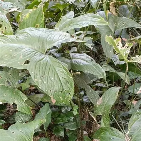 海芋 K. Koch),是天南星科海芋属的大型常绿草本植物;具匍匐根茎,有直立地上茎,…