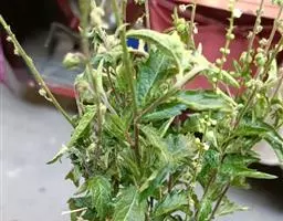 1、症状:橡胶树向粉病侵害橡胶树的嫩叶、嫩芽及花序,不危害老叶。感病初期,嫩叶出现辐射状透明菌斑,之后病斑上出现白粉;病斑初期多数为圆形,后期为不规则形。病害严重时,病叶布满白粉,叶片皱缩畸形,最后脱落。花序感病后也出现白色不规则形病斑,严重时花蕾大量脱落、凋萎。