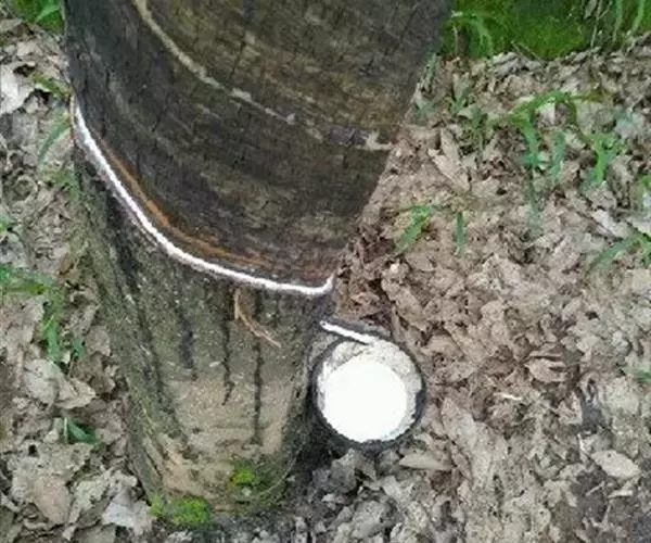 症状:割胶时,割线不排胶,割线干涸变褐色。变成褐色的部分,集中乳管列周围。当刮削割线以下的病皮时,也可看到变褐现象,随着乳管方向沿树干向下发展,有时可看出变褐现象只局限于分布在连续的乳管群的近似同心的薄层中。该病可分为三个类型:内褐型、外褐型、稳定型。
