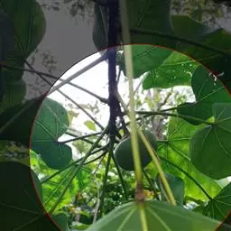 症状:古铜色嫩叶感病后,呈现不规则形,暗绿色像开水烫过一样的水渍状病斑,即所谓急性型病斑,病斑大而凹陷。淡绿色嫩叶感病后呈现出近圆形或不规则形的暗绿色或褐色病斑,病斑边缘凹凸不平,叶片皱缩畸形;随着叶片老化,病斑边缘变褐,中央呈灰褐色,并会穿孔。接近老化的叶片感病后,病斑凸起成小圆锥体。嫩梢、叶柄、叶脉感病后,出现黑色下陷小点或黑色条斑。芽接苗感病后,嫩茎一旦被病斑环绕,顶芽便会发生回枯。绿果感病后,病斑暗绿色,水渍状腐烂。