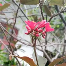 变叶珊瑚花,是大戟科麻风树属常绿灌木。变叶珊瑚花单叶互生,倒阔披针形,叶面为浓绿色,叶背为紫绿色,…