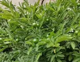 朝天椒茄科辣椒属一年或多年生草本植物;卵形;花通常单只生长于二分叉间,花梗直立,花稍俯垂,…
