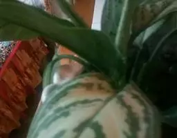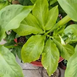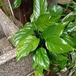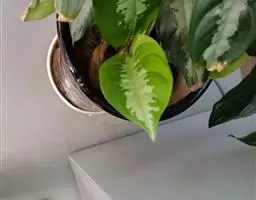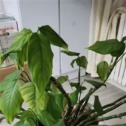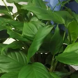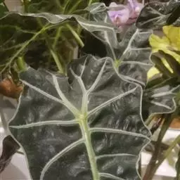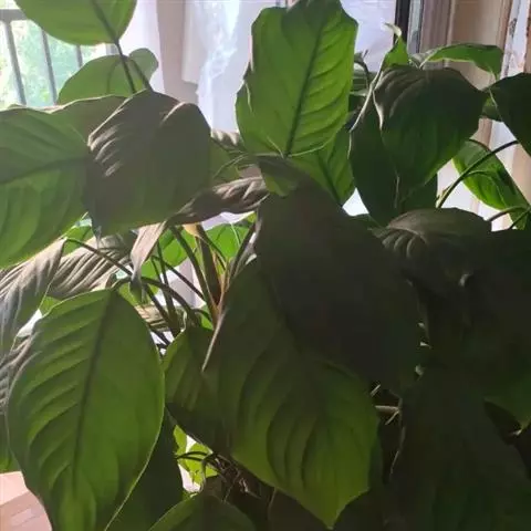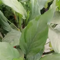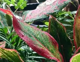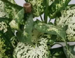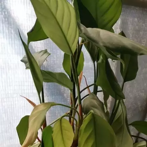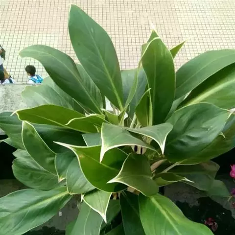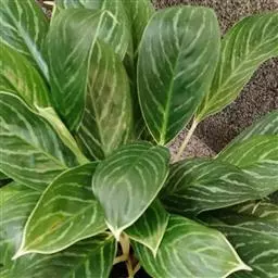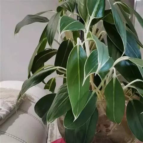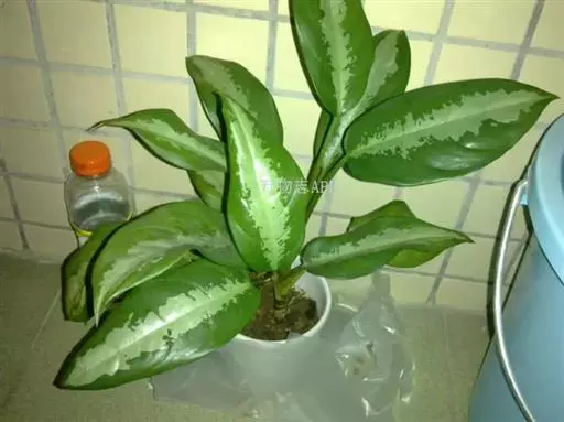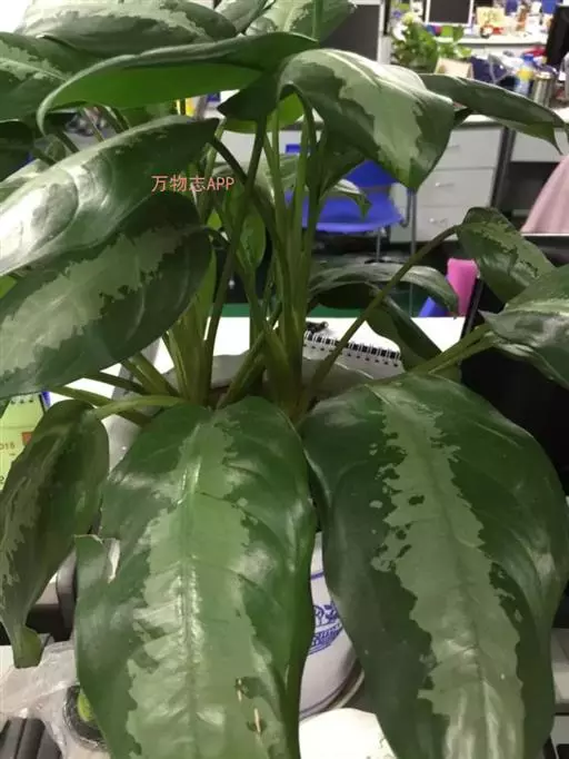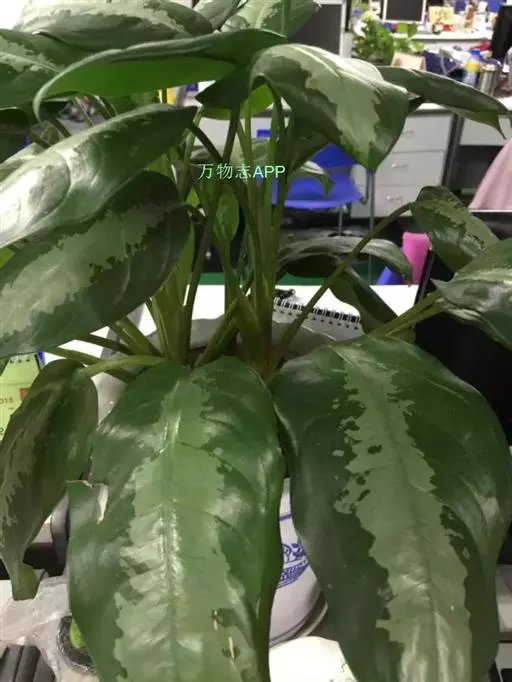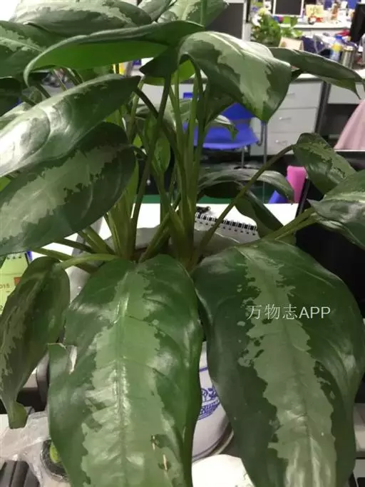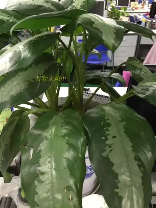 雅丽皇后又名白雪粗肋草、银河粗肋草。植株直立,叶片披针形,革质,锐尖,叶深绿色。中肋两侧具银灰色大块条状斑块,叶缘与中脉处为暗绿色。本种生长势强,易生分枝。耐阴性极强。银河粗肋草:叶阔披针形,沿中肋有银灰色宽条斑。
