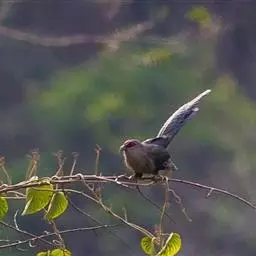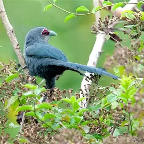 绿嘴地鹃:体形似小鸦鹃,但羽色大致绿灰;嘴绿色,头侧眼的周围有一裸区;后爪弯曲。虹膜赤红色,…