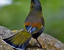 蓝翅噪鹛:噪鹛科、彩翼噪鹛属动物。中型鸟类,体长22-25厘米。上体棕橄榄褐色密被黑色鳞状斑,…