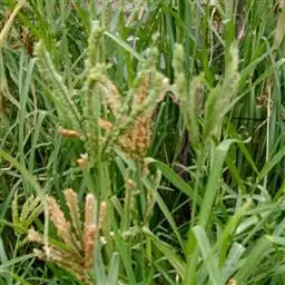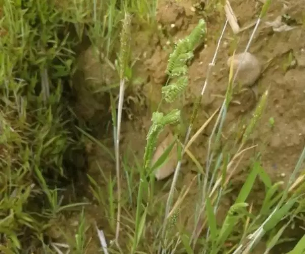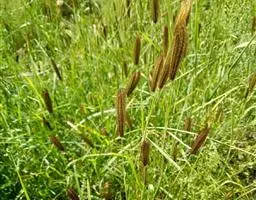 菵草,别名:菵米、水稗子,拉丁文名:Beckmannia syzigachne. 禾本科、菵草属一年生。秆直立,叶鞘无毛,多长于节间;叶舌透明膜质,叶片扁平,粗糙或下面平滑。圆锥花序分枝稀疏,直立或斜升;小穗扁平,圆形,灰绿色;颖草质;边缘质薄,白色,背部灰绿色,具淡色的横纹;外稃披针形,常具伸出颖外之短尖头;花药黄色,颖果黄褐色,长圆形,先端具丛生短毛。花果期4-10月。生于海拔3700米以下之湿地,水沟边及浅的流水中。