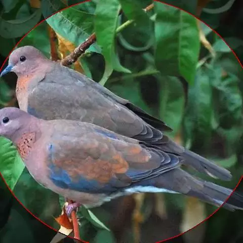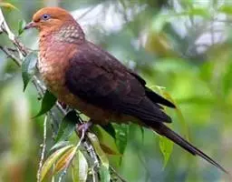 山斑鸠 习性:常成对或成小群活动,有时成对栖息于树上,或成对一起飞行和觅食。如伤其雌鸟,雄鸟惊飞后数度飞回原处上空盘旋鸣叫。在地面活动时十分活跃,常小步迅速前进,边走边觅食,头前后摆动。飞翔时两翅鼓动频繁,直而迅速。有时亦滑翔,特别是从树上往地面飞行时。鸣声低沉,其声似‘ku-ku-ku’反复重复多次。
