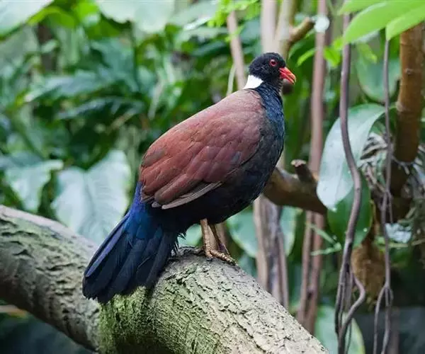 斑尾鹃鸠体长38厘米,是体大而尾长的褐色鹃鸠。背及尾满布黑色或褐色横斑。头灰,颈背呈亮蓝绿色。胸偏粉,…