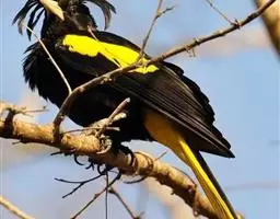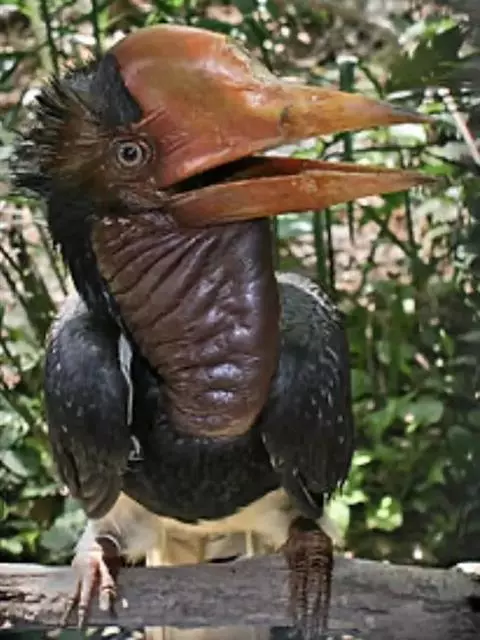 花冠皱盔犀鸟雄鸟体长约105厘米,雌鸟较小。尾白,雄雌两性的背、两翼及腹部均为黑色,但雄鸟头部奶白色,…