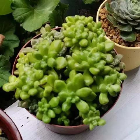 虹之玉是景天科景天属的多肉植物,多年生肉质草本植物。生长速度较快,叶片肉质,呈长椭圆形,约1厘米长,…