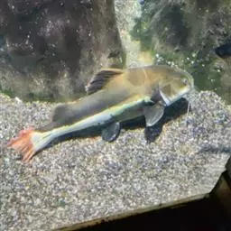 红尾护头鲿,商品名:军舰鸭嘴、红尾鸭嘴鲶鱼、红尾鲶鱼、狗崽鲸、狗仔鲸、红尾猫.分布于亚马逊河与奥里诺科河流域,是一种常见的观赏性鱼类。