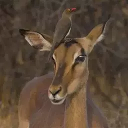 大林羚(学名:Tragelaphus oryx):体长200-280厘米,尾长50-90厘米;体重300-942千克。皮毛呈褐色或黄褐色,上面有一些垂直的白色条纹。雄性随着年龄的增长,脖子和肩膀上的颜色略带蓝灰色,而一道短而深的鬃毛从脖子的后部向下延伸。也有一些两侧有白色斑纹。雌雄都有角,角长43-66厘米,扭曲。雄羊前额的毛发很密,喉袋很大。尾尖有一簇黑色的毛发。