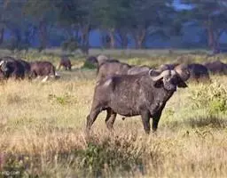 非洲野水牛:共有5个亚种。头体长2.1-3.4米,身高1-1.7米,体重300-900千克。胸膛宽…