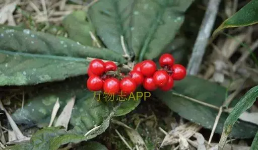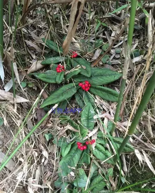 出自《本草图经》:百两金,叶似荔枝,初生背面俱青,结花实后,背紫面青。苗高二、三尺,有干如木,…