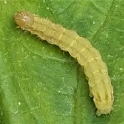 棉铃虫,Helicoverpa armigera (Hübner),鳞翅目,夜蛾科 ,广泛分布在中国及世界各地,中国棉区和蔬菜种植区均有发生。黄河流域棉区、长江流域棉区受害较重。近年来,新疆棉区也时有发生。寄主植物有30多科200余种。棉铃虫是棉花蕾铃期重要钻蛀性害虫,主要蛀食蕾、花、铃,也取食嫩叶 。