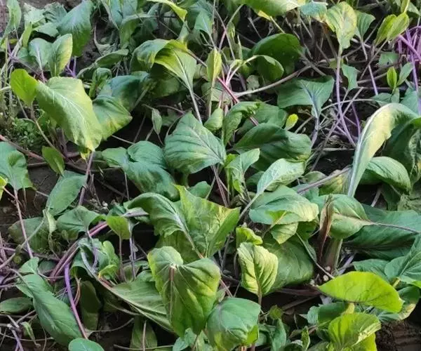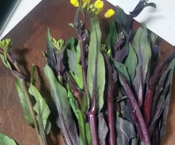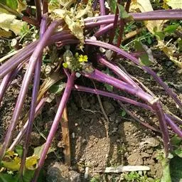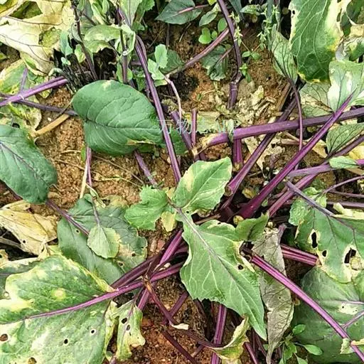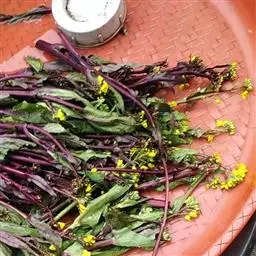 (4)采收:秋茬紫菜薹主薹采收后,正值侧菜薹盛发期时,气温下降,生长缓慢,因此主薹要更早采收,达15厘米长后即采摘,促使侧薹早发快长。一般只能收1次或2次侧薹,采收期较短,产量较春茬低,但采收期处于较低的温度,菜薹的品质较好。