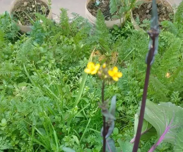 红菜薹的根系不发达,无明显的主根。根系入土深度40cm左右,横向伸展半径40cm。叶有二种:一种为莲座叶,是制造营养的器官,多为桃心圆形叶,卵圆形,且有明显2~3片大裂片和多个小裂片。花薹上着生的叶片称为薹生叶,薹生叶也为食用部分,薹生叶呈卵圆形或呈披针形,一般细小无裂片,薹生叶柄短以至退化。茎有二种:一为粗壮的短缩茎,短缩茎一般长12cm左右,直径5.0cm,其上着生叶片,且抽生花薹。二为花薹茎,包括主花薹和侧花薹均从短缩茎上发生。花薹茎肥嫩,末木质化之前为红菜薹的食用部分,花薹一般在25~35cm长采收为宜,这时,花薹最肥大处直径为1.5~2.5cm,有幼嫩叶3~5片,花薹梢有花蕾,3~5朵黄色小花开放,外观艳人。