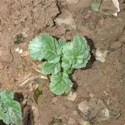 B.苗盘育苗 成活率高,生长快。育5叶苗可选用128孔苗盘子,每100盘需备用基质0.4立方米。基质的配制为草炭2份、蛭石1份,或草炭、蛭石、废菇料各1份,并用蛭石作覆盖料。在配制基质时,每立方米基质加入尿素0.5公斤和磷酸二氢钾0.45公斤,与基质混合拌均匀后备用。播种前要测定发芽率,紫菜薹种子发芽率较高,一般应在95%以上,用种量为每亩18克,苗盘 4000个。每盘放饱满的种子2粒。播深0.3~0.5厘米,播后上面覆盖薄薄一层蛭石,浇水后不露种子,各穴室清晰可见便可。播种覆盖完毕后,将育苗盘喷透水,见有水从穴盘底孔滴出为止。秋茬育苗期气温较高,要勤喷水,保持苗盘基质潮湿。幼苗三叶一心时,结合喷水进行1~2次叶面喷肥,肥料用0.3%~0.5%尿素加0.2%磷酸二氢钾。幼苗长1片真叶后即间去多余的苗,每穴留壮苗1株,并行查缺补苗。育苗盘应置放于光照良好,又能避雨水的凉棚下。苗龄25~30天、5片真叶时定植。