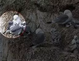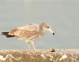 灰翅鸥,夏羽头、颈、腰、尾白色;肩、背和翅上覆羽鸽灰色。冬羽和夏羽相似,但头和颈具淡褐色纵纹,有时…