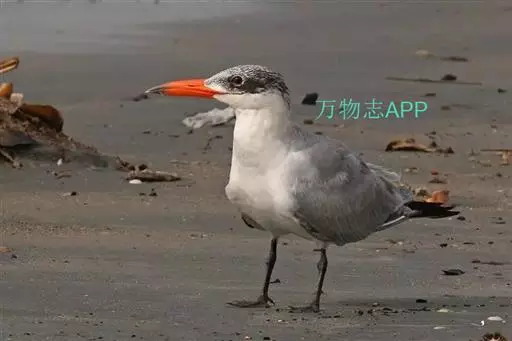 鸥嘴噪鸥,中型水禽,体长31~39厘米。夏羽额、头顶、枕和头的两侧从眼和耳羽以上黑色。背、肩、腰和…