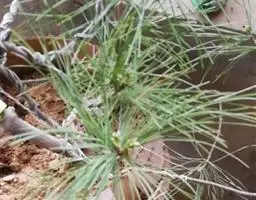 2、油松整形和换头:油松在管理过程中,需注意整形和换头工作,油松在生长过程中,有的重枝,头会损坏或处于弱势,须用强健的侧技拉上、捆好,以后成为中心优势,这个过程就是换头。