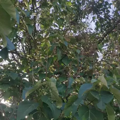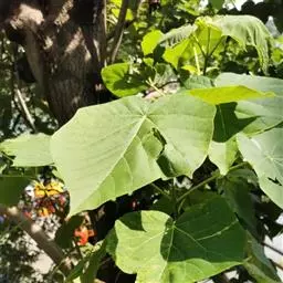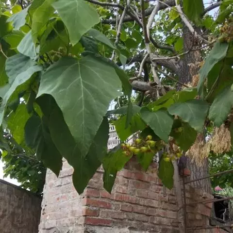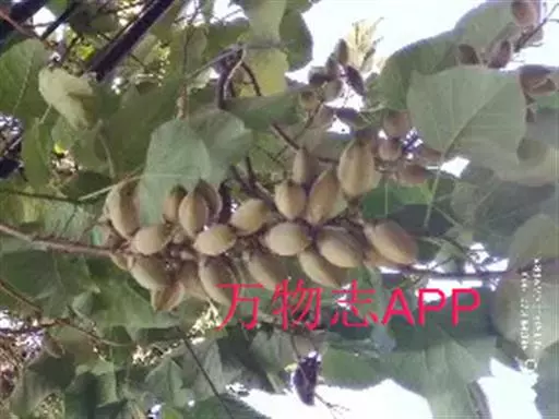 乔木高达20米,树冠宽大伞形,树皮褐灰色;小枝有明显皮孔,幼时常具粘质短腺毛。叶片心脏形,长达40厘米,顶端锐尖头,全缘或波状浅裂,上面毛稀疏,下面毛密或较疏,老叶下面的灰褐色树枝状毛常具柄和3-12条细长丝状分枝,新枝上的叶较大,其毛常不分枝,有时具粘质腺毛;叶柄常有粘质短腺毛。