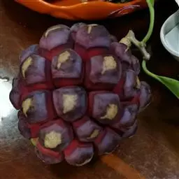 聚合果近球形,直径2.5-4厘米;成熟心皮倒卵圆形,长10-22毫米;干时革质而不显出种子;种子2-3粒,少有4-5粒,长圆状肾形,长5-6毫米,宽3-5毫米。花期5-8月,果期8-12月。