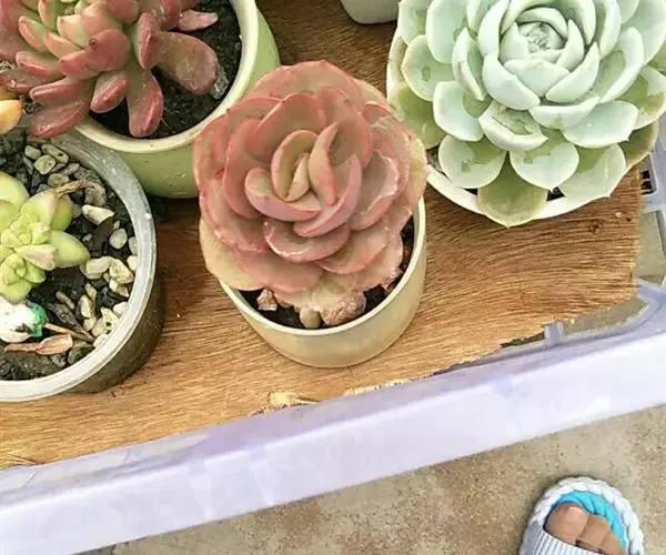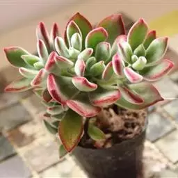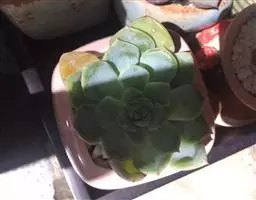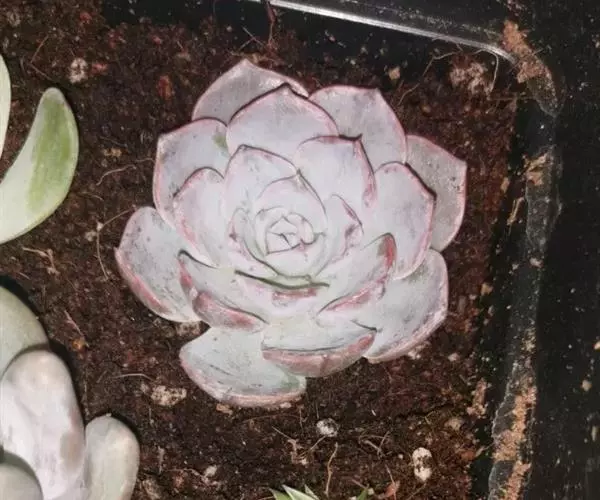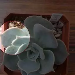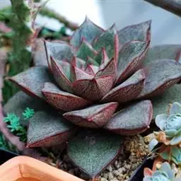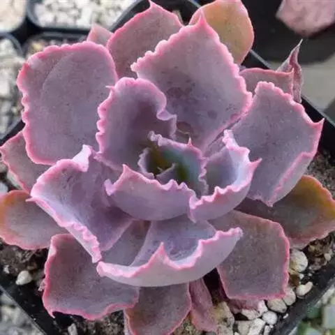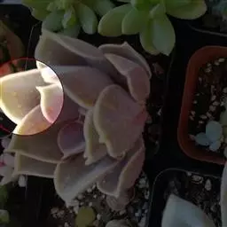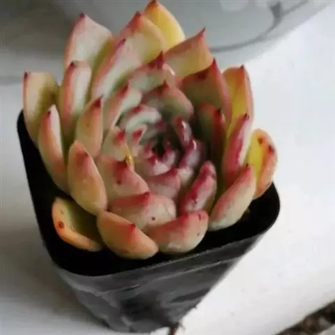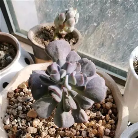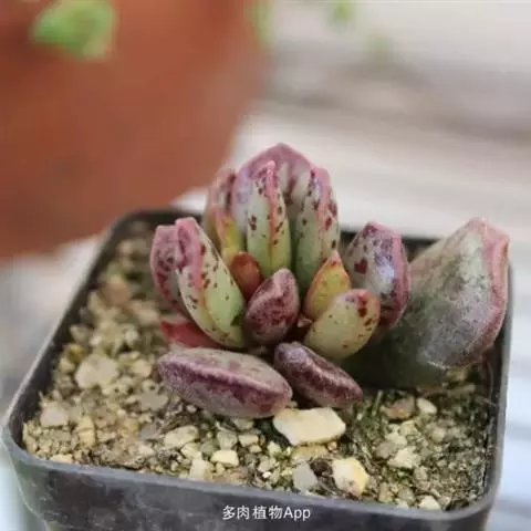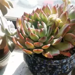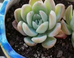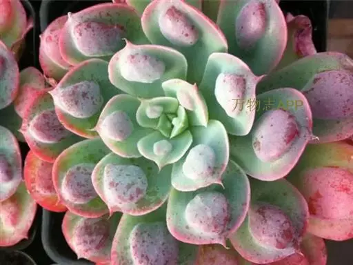 蓝石莲光照足叶子的颜色将更加鲜艳,非常漂亮。不论放置什么位置,用手感觉表土稍微干燥再浇水,忌频繁浇水。 养在阳光房内,一旦温度高于35度,就会移到明亮的散射光下慢慢少水,因为花季是夏季,花开后就慢慢要有短暂的休眠了,整个夏季短暂的休眠期少水或不给水,到了9月中旬温度下来了,就开始慢慢恢复浇水,适应了阳光房的蓝石莲夏天是可以正常生长的,休眠不是非常明显,但是夏天水分千万不要弄到叶心,不然在夏天就会挂了,生长期叶片可以喷到水。冬季如果温度能够保持0度以上,都是可以给水的,0度以下就要断水,否则就容易冻伤了。冬季虽然寒冷,可也不是一个冬季都不给一点水,也会在适当的时候微微给点水在植株的根部,切勿喷雾或给大水,冬季叶心水分停留太久,也容易引起腐烂,水大还会烂茎。春季温度上升后就可以慢慢恢复正常给水。蓝石莲是比较好养的一个品种,四季中除了夏季要注意适当遮阳,其他季节都可以全日照。土壤用的是泥炭混合了颗粒的煤渣河沙等,土表铺设干净的颗粒河沙,配土以透气为主。 有着非常特别的粉色叶片,较少见的品种。光照不足的话,会变成蓝绿色。需要用排水透气性很好的植料种植。生长季节是春秋两季,土完全干透后再浇透水。夏季需要遮阴,并控制浇水。冬季放于室内向阳处养。