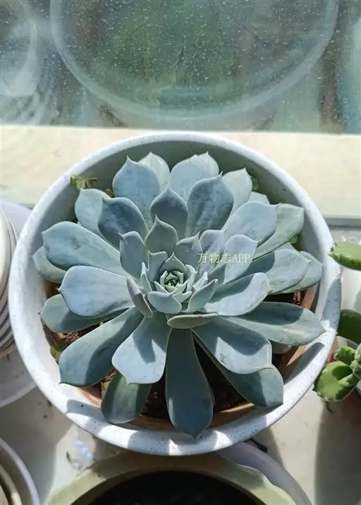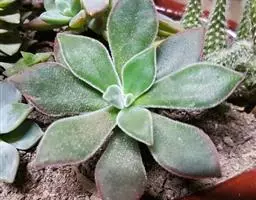 皮氏石莲是景天科、拟石莲花属的多肉植物,也被称作蓝石莲。莲座中小型,直径10-15厘米,灰绿色的叶片被有一层淡蓝色的霜粉,在阳光充足且具一定温差的环境下会变成粉红色。