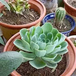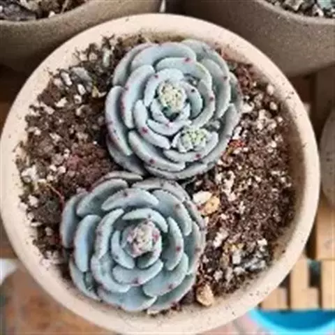 蓝石莲需要接受充足日照叶色才会艳丽,株型才会更紧实美观。日照太少则叶色浅,叶片排列松散,拉长,叶片变薄。蓝石莲是中大型植株,随着生长的状态可以1-3年换盆一次,盆径可以比株径大1~2寸,这样可促进植株成长。介质一定要乾燥后才浇水,可以施用缓效肥。 生长适温15-25度,冬季不低于5度;配土一般用泥炭+蛭石+珍珠岩各一份,并添加适量的骨粉,也可用腐叶土3份、河沙3份、园土1份、炉渣1份混合配制;生长期浇水干透浇透,空气干燥时可向植株周围洒水,但叶面,特别是叶丛中心不宜积水,否则会造成烂心,夏季高温要适度遮阴,通风和节水;生长期施肥一般每20天左右一次。