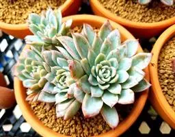 大和锦是景天科拟石莲花属的多肉植物。肉质叶排成紧密的莲座状,广卵形至散三角卵形,背面突起呈龙骨状,…