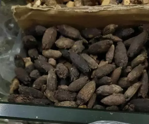 种子横切面尖梯形或不规则三角形,外周微波状。假种皮细胞多列,切向延长。种皮表皮细胞径向延长,长圆形或类长方形,长40-90μm,直径10-45μm,外被角质层。下皮细胞1列,切向延长,含红棕色或黄棕色色素。油细胞1列,褐红色或棕红色,径向延长,圆柱形,长至26μm,直径至21μm,胞腔含硅质块,外胚乳细胞含由微小淀粉粒集红成的淀粉团,并有细小草酸钙方晶。骨胚乳细胞含糊粉粒。胚细胞含糊粉粒及油滴。