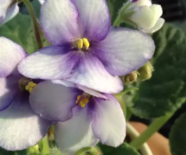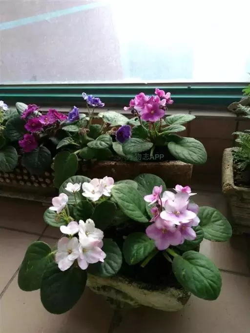非洲紫罗兰 植株矮小,四季开花,花形俊俏雅致,花色绚丽多彩。由于其花期长、较耐阴,株形小而美观,盆栽可布置窗台、客厅,茶几良好的点缀装饰,是优良的室内花卉。栽培的均为杂交种,园艺品种甚多,有上千个。有单瓣和重瓣,花色有白、粉、红和蓝等。