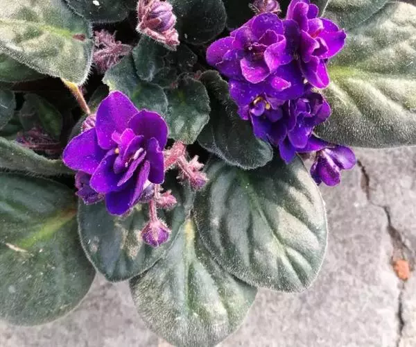无茎,全株被毛。叶卵形,叶柄粗壮肉质。花1朵或数朵在一起,淡紫色。栽培品种繁多,有大花、单瓣、半重瓣、重瓣、斑叶等,花色有紫红、白、蓝、粉红和双色等。