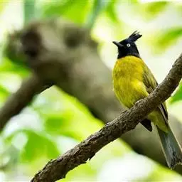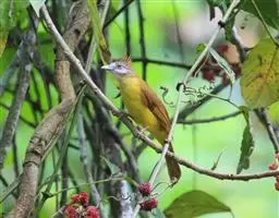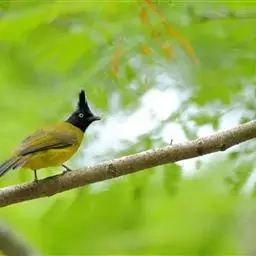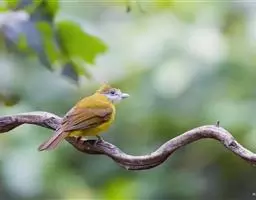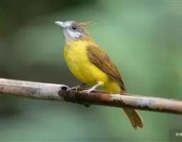 黑冠黄鹎:体长18-21厘米,是一种中等体型偏黄色鹎。整个头、颈、颏、喉黑色,头顶有显著直立的羽冠,…