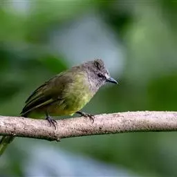 黄绿鹎,小型鸟类,体长19-22厘米。额至头顶暗褐具灰色羽缘,眼先黑色,…