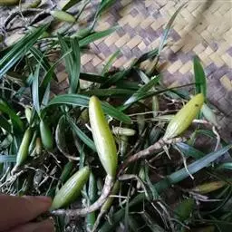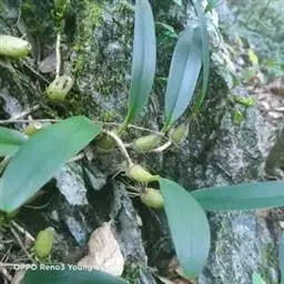 云南石仙桃:根状茎匍匐、分枝,粗4-6毫米,密被箨状鞘,通常相距1-3厘米生假鳞茎;假鳞茎近圆柱状…