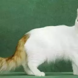 斑点阴影色和白色VAN SHADED AND WHITE: 白色带有彩色色块,这些色块限制在猫咪的头、尾巴和腿部。彩色色块的标准遵循通行的阴影色的标准。身体有一到两块小型的色斑是允许的。