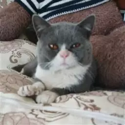 蓝白异国短毛猫 异国短毛猫是在六十年代的美国,以人工方式将波斯猫等长毛种的猫与美国短毛猫、缅甸猫等交配繁殖出来的品种。当初进行繁殖计划时,异国短毛猫的体形还很瘦弱,波斯猫的饲养者担心纯种波斯猫会被杂种化,有些繁殖者甚至强烈批评它“有损纯种猫”,因而在1968年禁止交配。当然,还是有人暗暗努力,最后发现用美国短毛猫配种,形体才渐渐成型。直到八十年代,异国短毛猫的品种正式确立,并获得猫协会的认可。