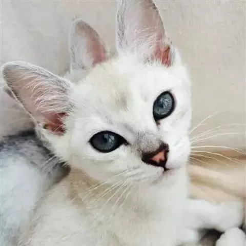 紫丁香-奶油端子LILAC-CREAM POINT:身体冰白色。端子色是带奶油补丁的紫丁香色。鼻头和足垫:淡紫红色和/或粉红色。眼色:鲜艳的蓝色。