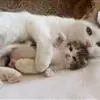 贝壳紫丁香色SHELL LILAC:下层绒毛白色,背部、肋部和尾巴的毛尖上点缀着轻微的紫丁香色。脸和腿可以有轻微的阴影色。肚子和胸膛白色。鼻头:淡紫色。足垫:粉红色。眼色:艳丽的红铜色。