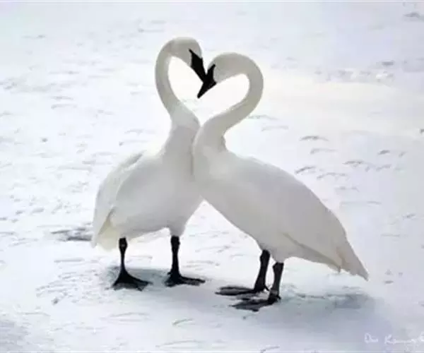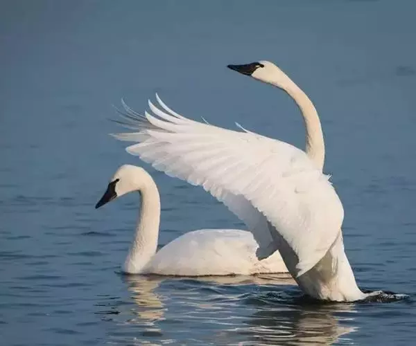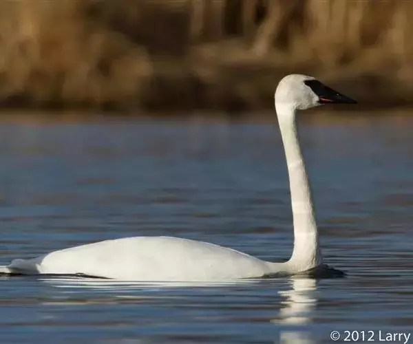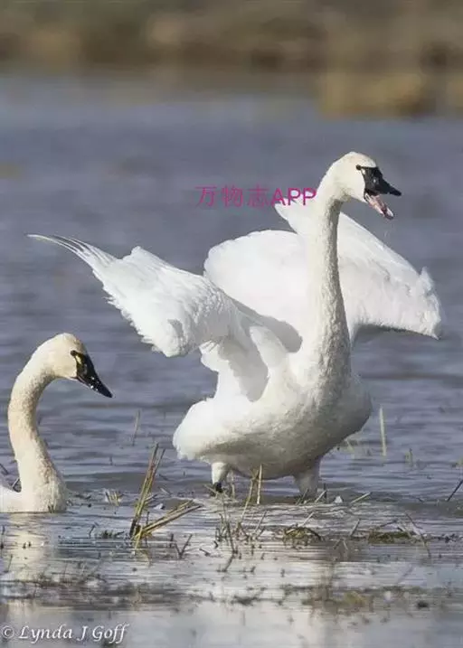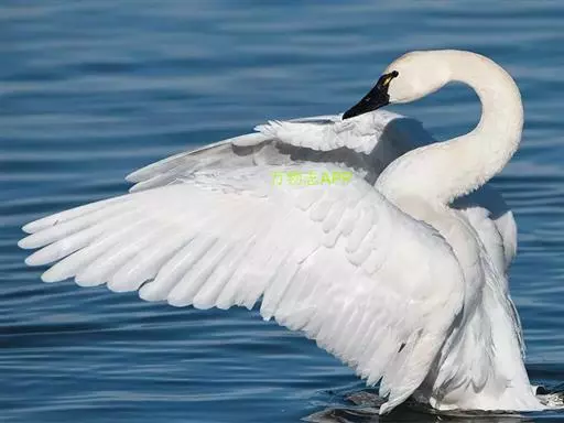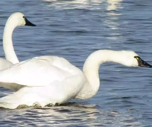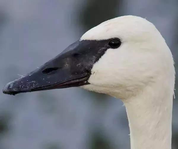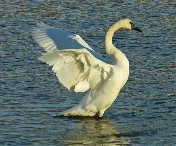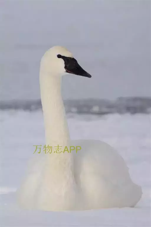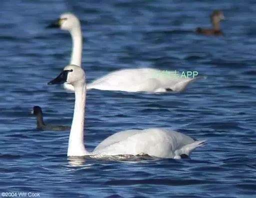 黑嘴天鹅(学名:Cygnus buccinator)是北美最大的原生鸟类,其体重和形态也是生活在地球上最大的水禽。全身洁白,鸟喙黑色,颈特长,在水中游泳时颈垂直朝上,头向前平伸,两翅紧贴两侧身上,身体前部沉入水中较多,后部较少,背部隆起,特别是在侧面观察更为明显。游泳轻盈而缓慢,起飞时两翅不断地拍打水面,两脚在水面奔跑一段距离才能飞起。飞翔时颈向前伸直,两脚伸至尾下,全身除脚和嘴黑色外,其余全为白色。