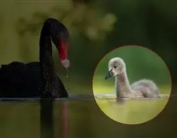 黑嘴天鹅是大型游禽,雄鸟身长145至163厘米,体重1180克;雌鸟139至150厘米,体重1000克。平均翼展为2.03米,平均体重为7~13.6公斤,平均寿命32岁 。雌雄同色,雌鸟体形略小于雄鸟,全身洁白,虹膜暗褐色,嘴黑色,沿嘴基有粉红色喙线。跗蹠、蹼、爪亦为黑色。幼鸟全身灰褐色,头和颈部较暗,下体、尾和飞羽较淡,嘴黄色。 [2-3]