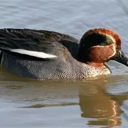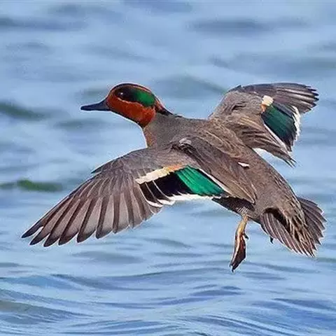 绿翅鸭是小型鸭类,体长37厘米,体重约0.5千克。嘴脚均为黑色。雄鸟头至颈部深栗色,…