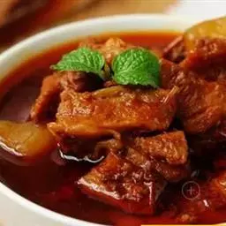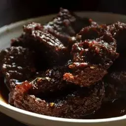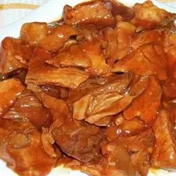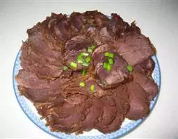 原料: 牛肉600克、葱1根、姜2片、八角1大匙、干辣椒、陈皮各80克 辅料: A料:酒酿、绍酒、糖、酱油各1大匙、酱色 、鸡精、胡椒粉、香油各1/4小匙、水1杯