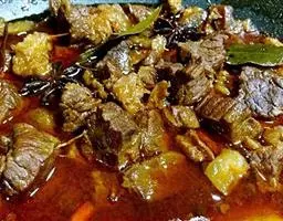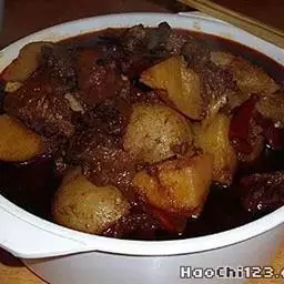 川辣红烧牛肉 主料:牛 肋骨肉土豆(或黄豆、白萝卜)