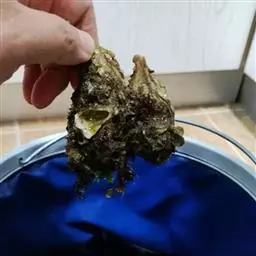 3、捞出后倒入适量米酒和酱油腌制15—20分钟。