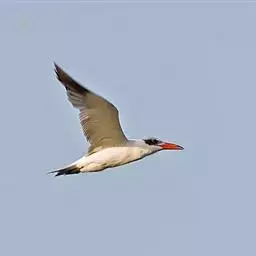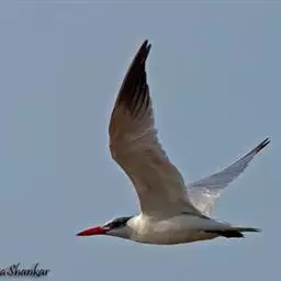 红嘴巨鸥,大型水鸟,体长47~55厘米。夏羽前额、头顶、枕和冠羽黑色。后颈、尾上覆羽和尾白色,…