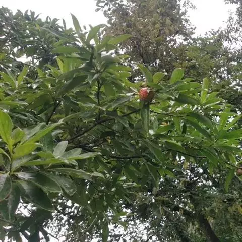 红色木莲是中国国家二级保护植物,常绿阔叶乔木,高可达30米,胸径达40—60厘米,能耐-16℃低温。叶浓绿、秀气、革质,全缘。树形优美,花色艳丽芳香。适应性强,高山、丘陵长势均佳,一年生苗若能搭棚蔗荫,肥培管理到位,苗高能达50厘米以上。5年生苗就开花结果。花期5-6月,花生于当年生嫩枝顶端。花有两大特色:一是含苞待放时,颜色最为艳丽美观;二是花色随气温而变,气温越低,颜色越红,气温升高,颜色则淡。果熟期9-10月,深红色果实悬挂枝头,是秋天一大景观。