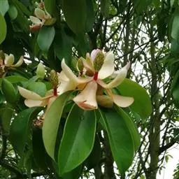 桂南木莲:常绿乔木,高可达20米,树皮灰色,光滑、芽、嫩枝有红褐色短毛。叶革质,…